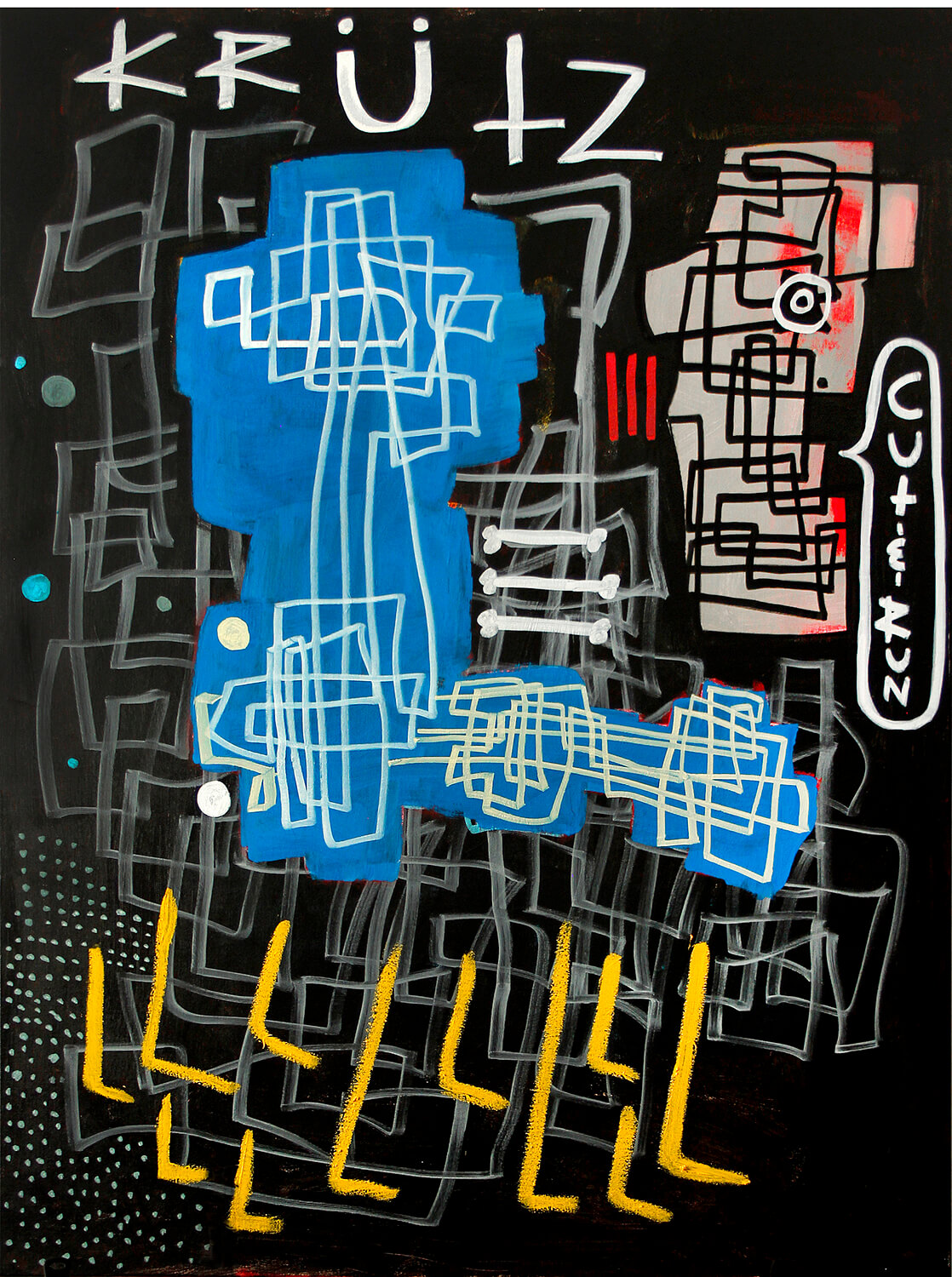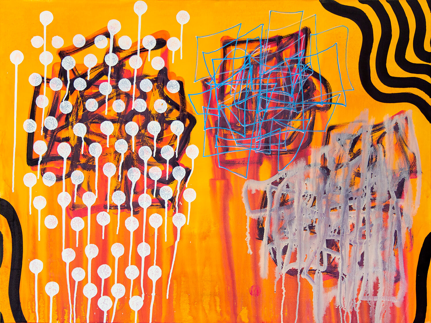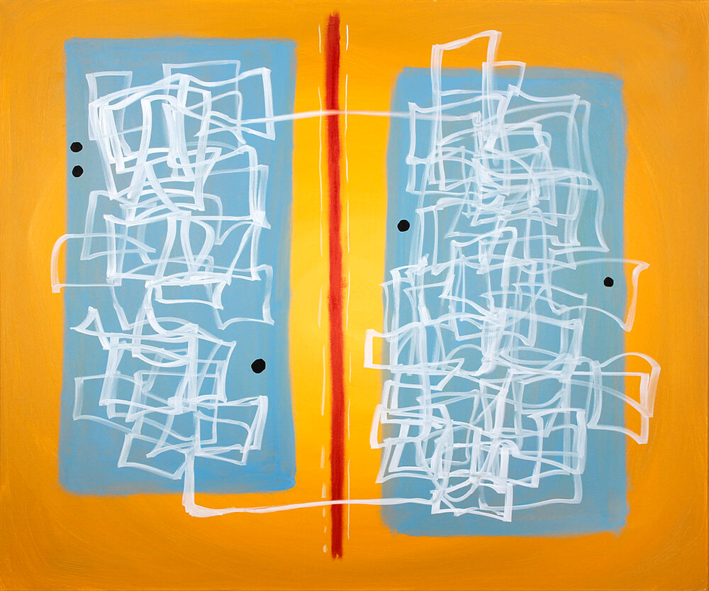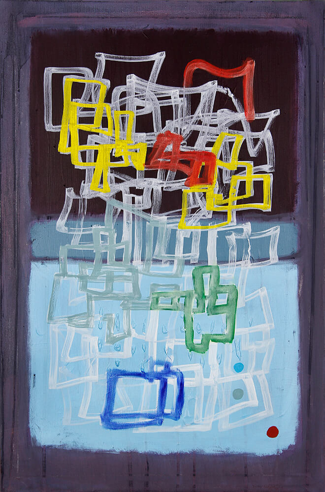 Acrylic, oil bar, graphite on canvas