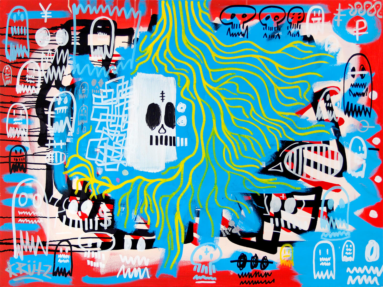 Acrylic, oil bar, screams on canvas