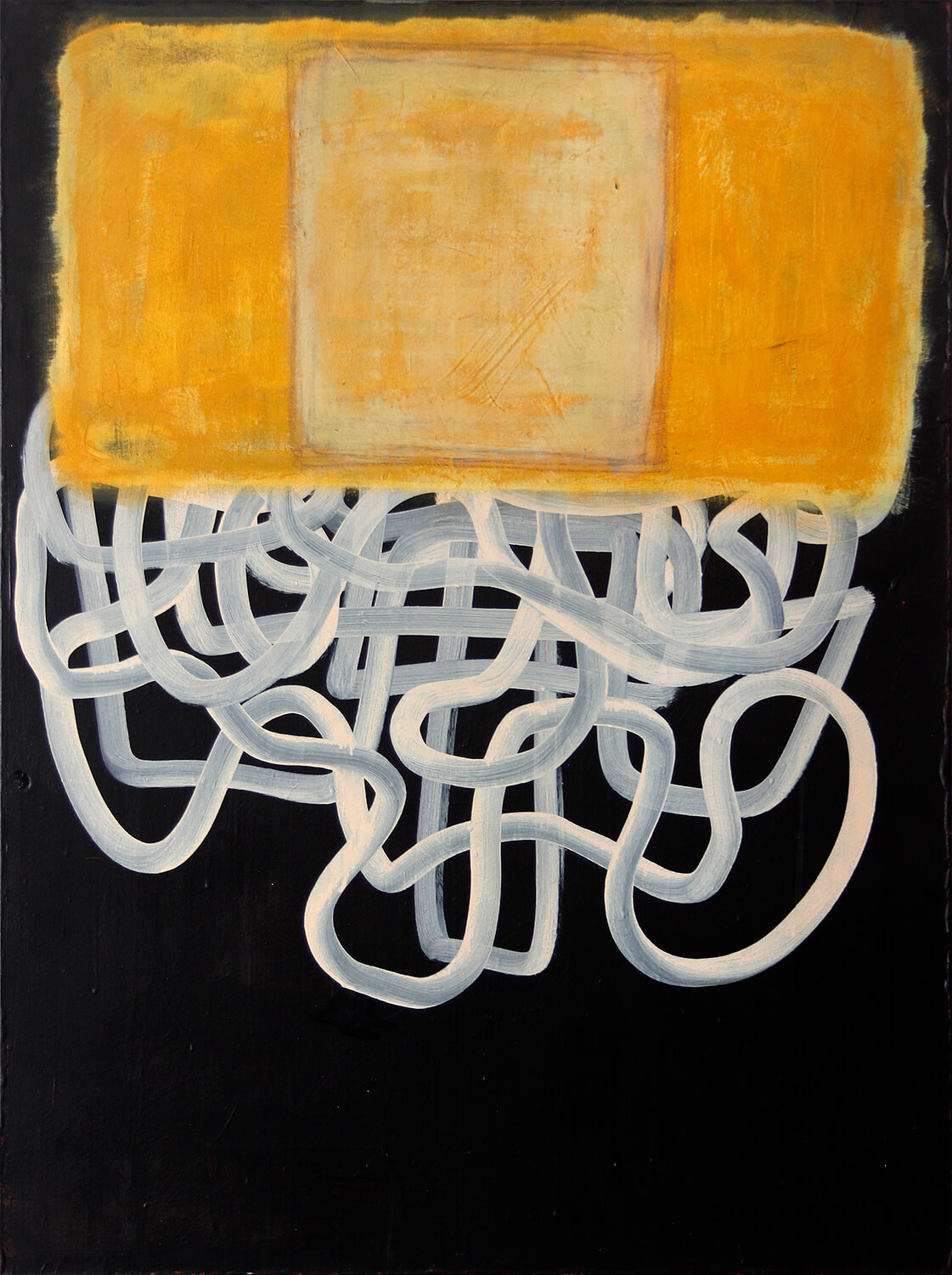 Acrylic, oil bar, powdered bone on canvas