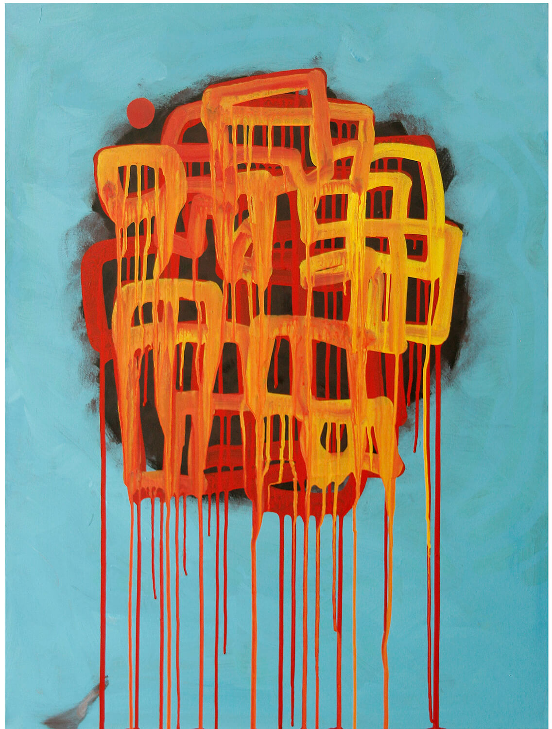 Acrylic, oil bar, spit on canvas