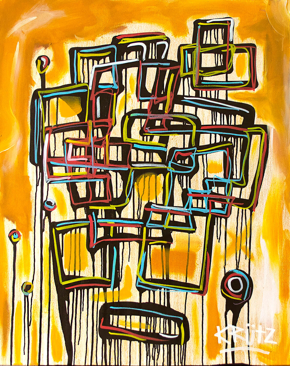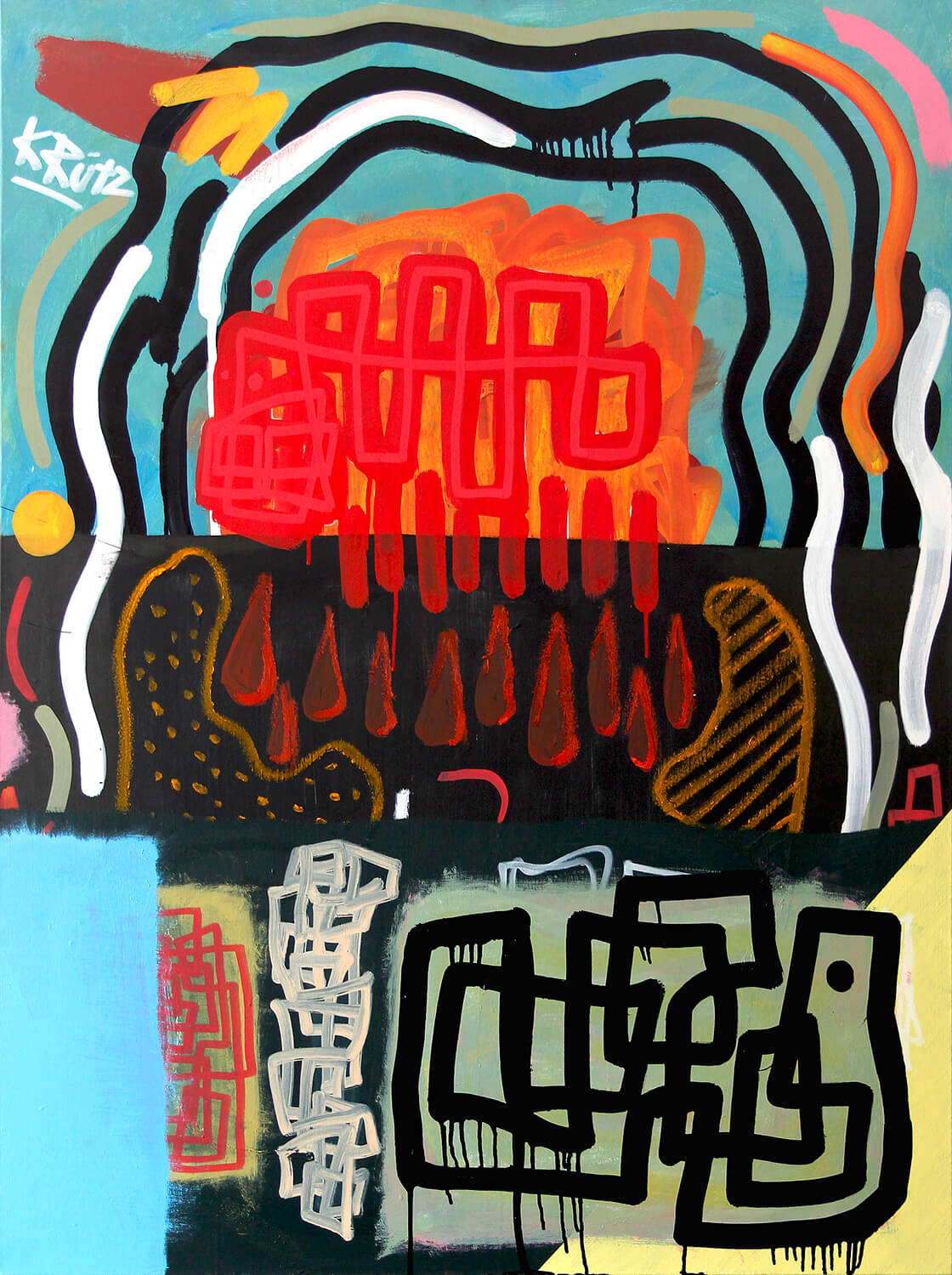 Acrylic, oil, ink on canvas