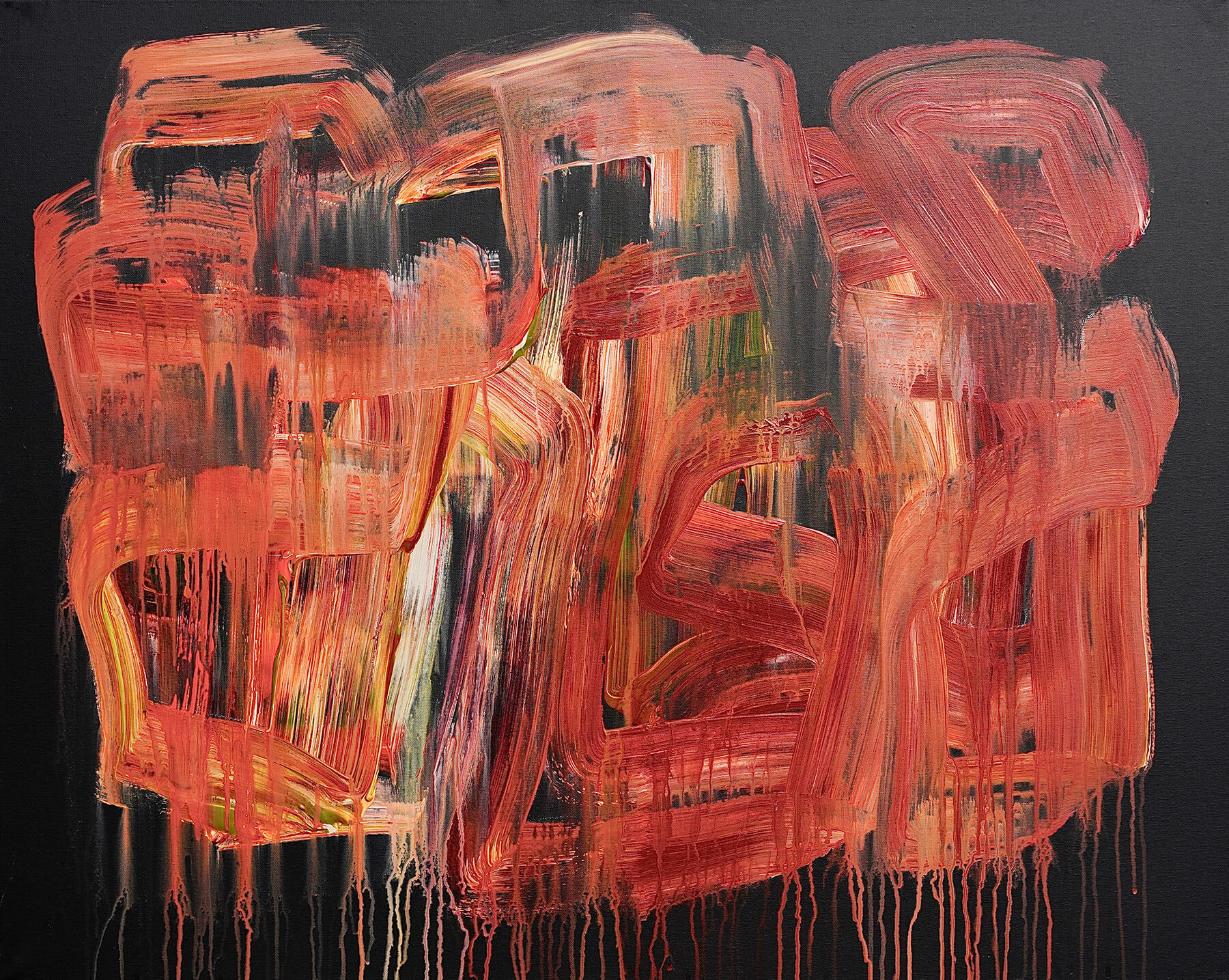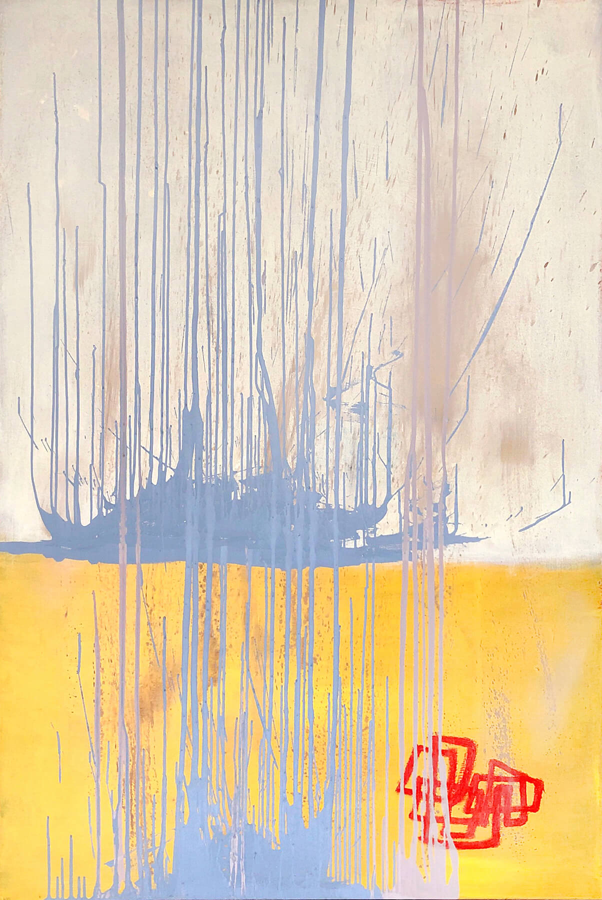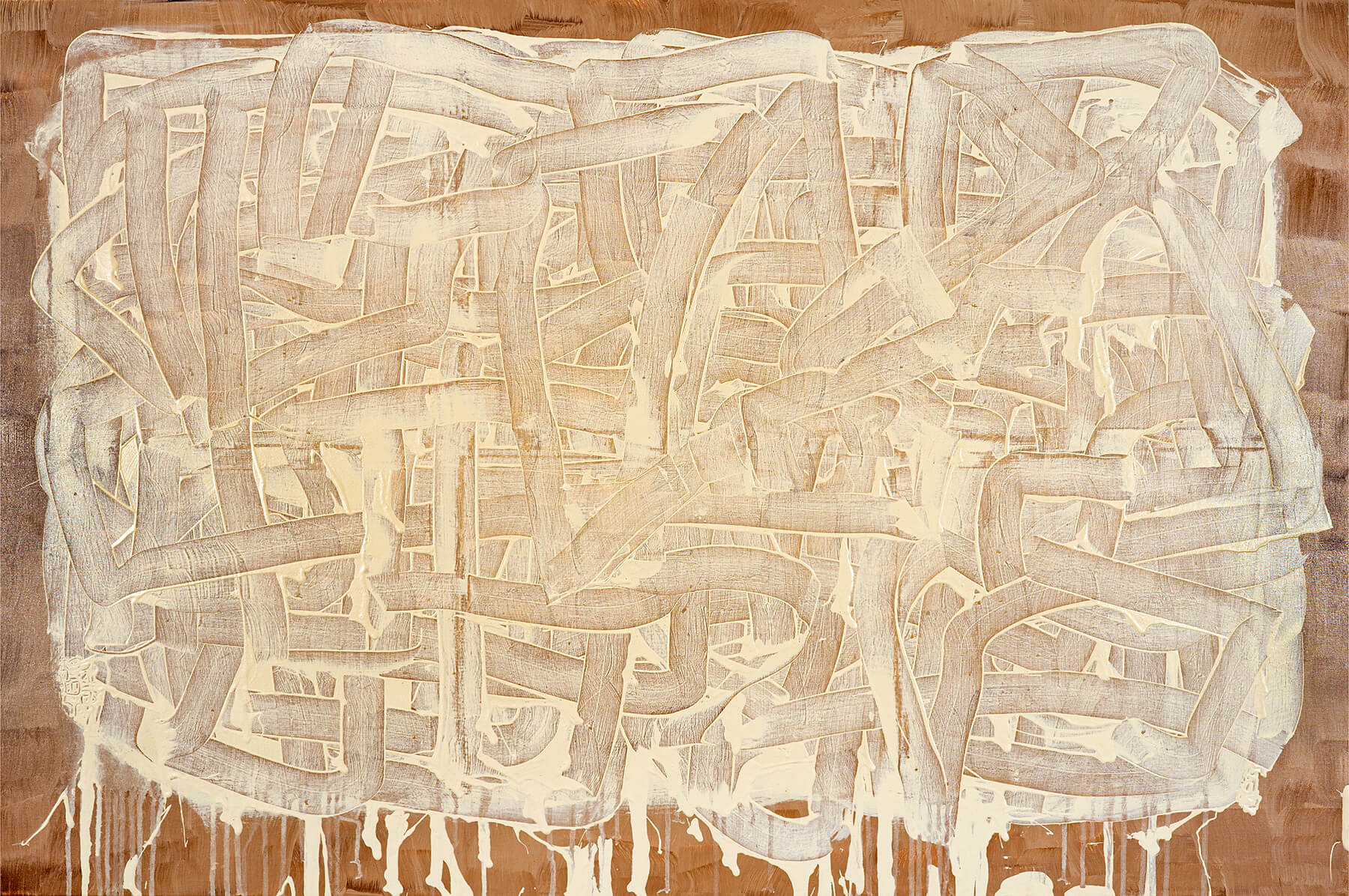 Acrylic, oil bar, graphite, pencil, chalk on canvas