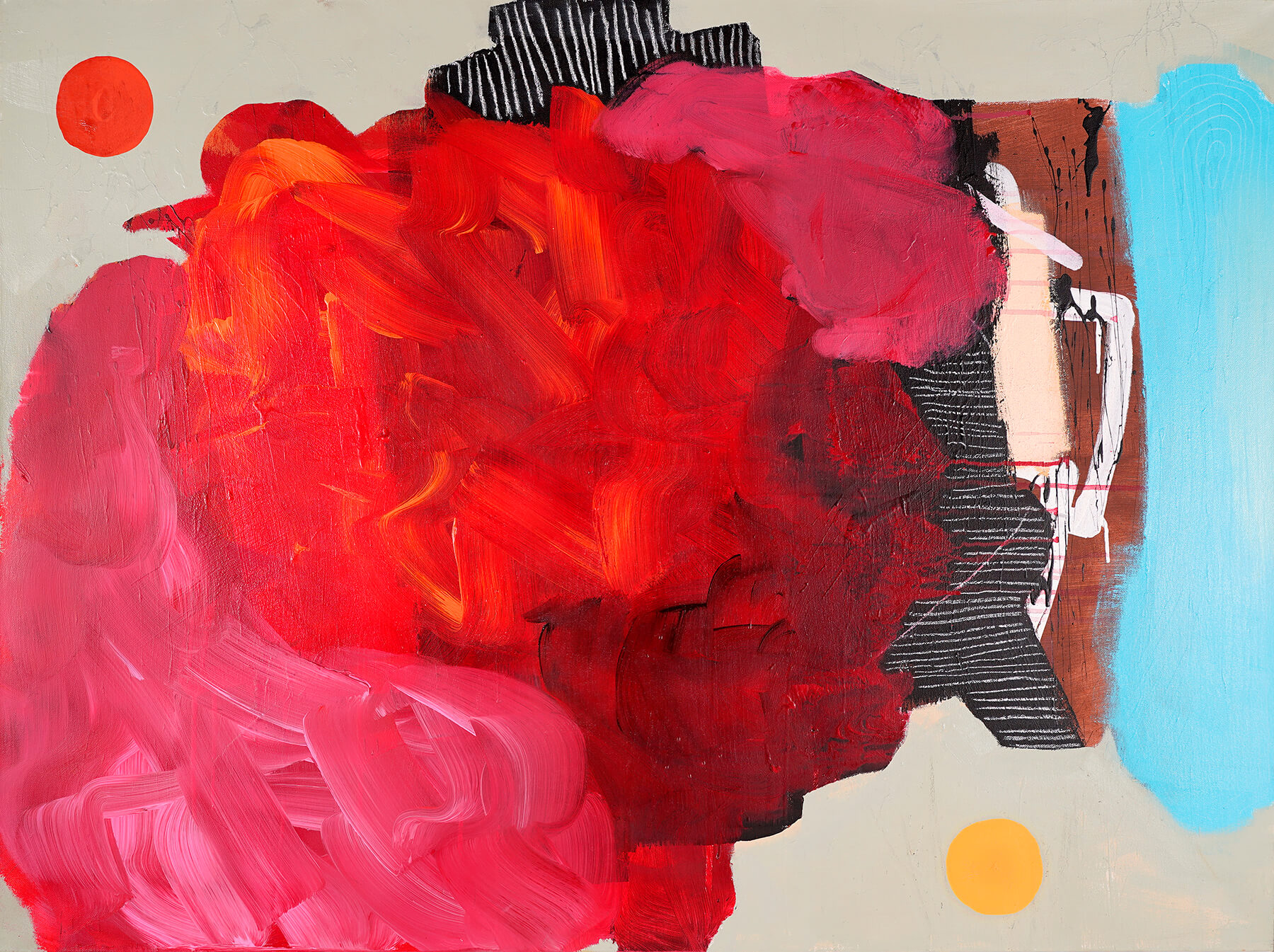 Acrylic, oil, chalk, chalk pastel, graphite, charcoal, glue on canvas
