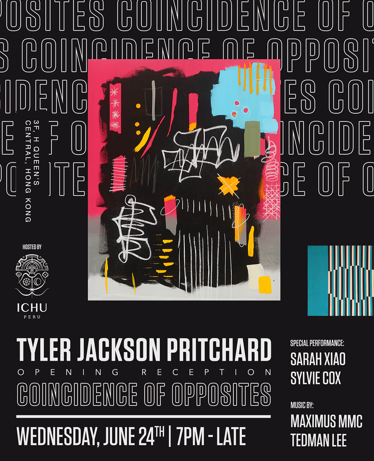 ‘Coincidence of Opposites’ explores the underlying unity of dualities, more specifically the fertile friction between chaos and order. On one side of the collection we witness very structured opp-art that, while minimal at first glance, seems to generate a reverberating hypnotic effect upon continued observation. This is then counterbalanced with the diversely layered, emotionally charged chaotic strokes typically associated with Jackson’s work.