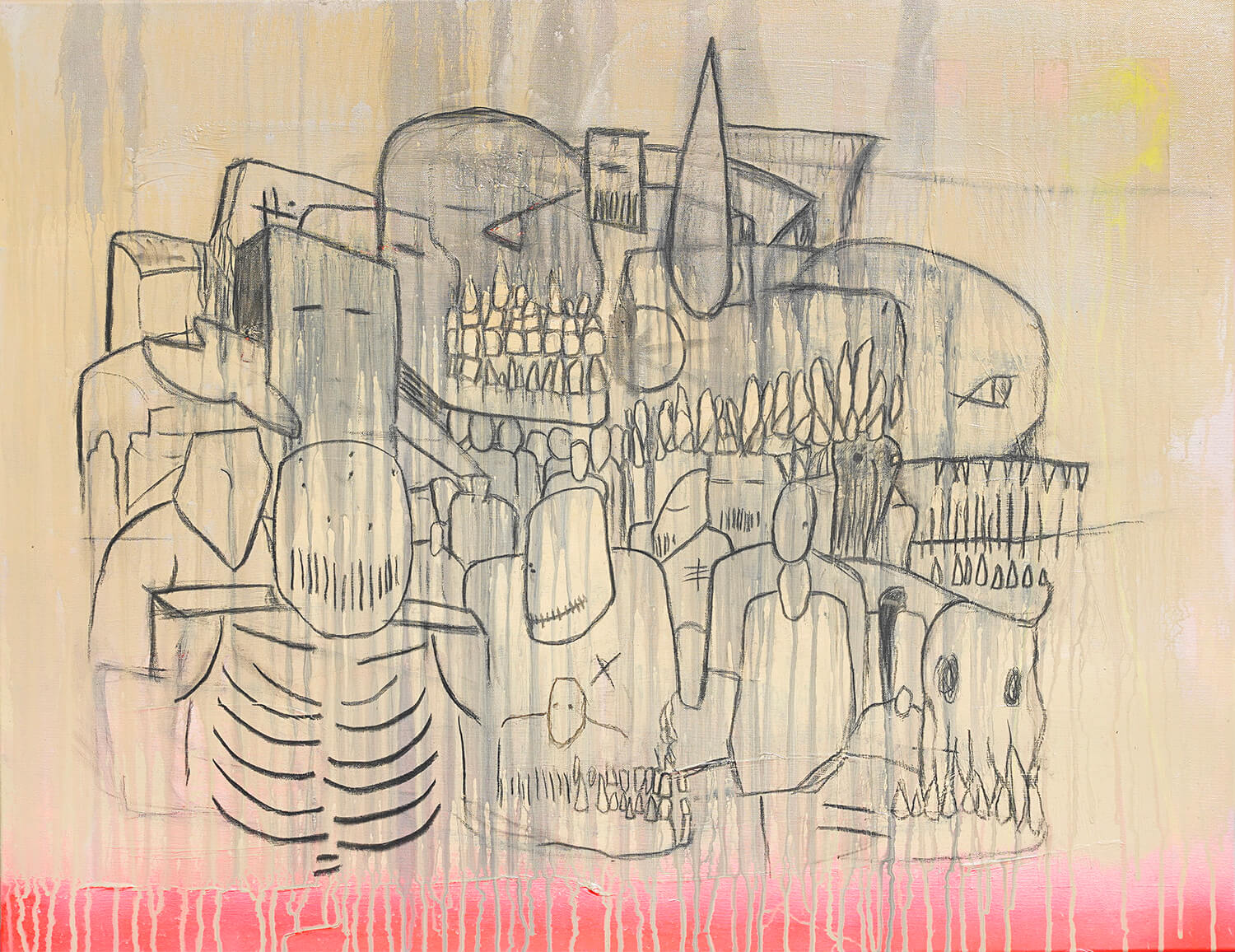 Acrylic, oil, chalk, chalk pastel, graphite, on canvas