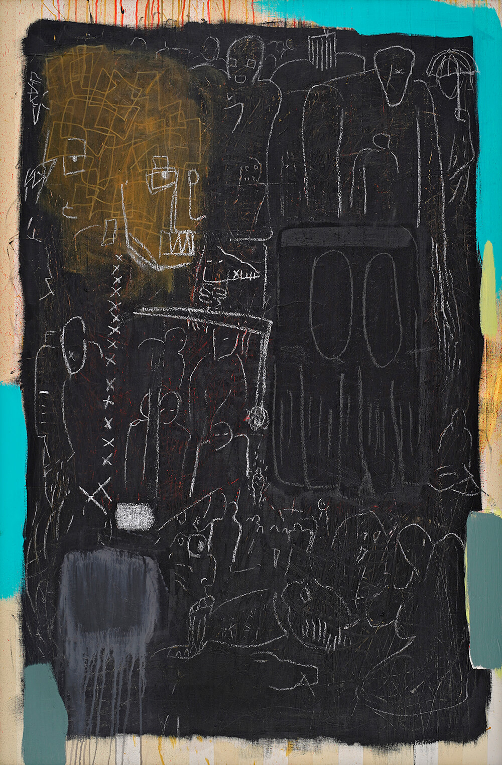 Acrylic, oil, graphite, chalk, chalk pastel on canvas
