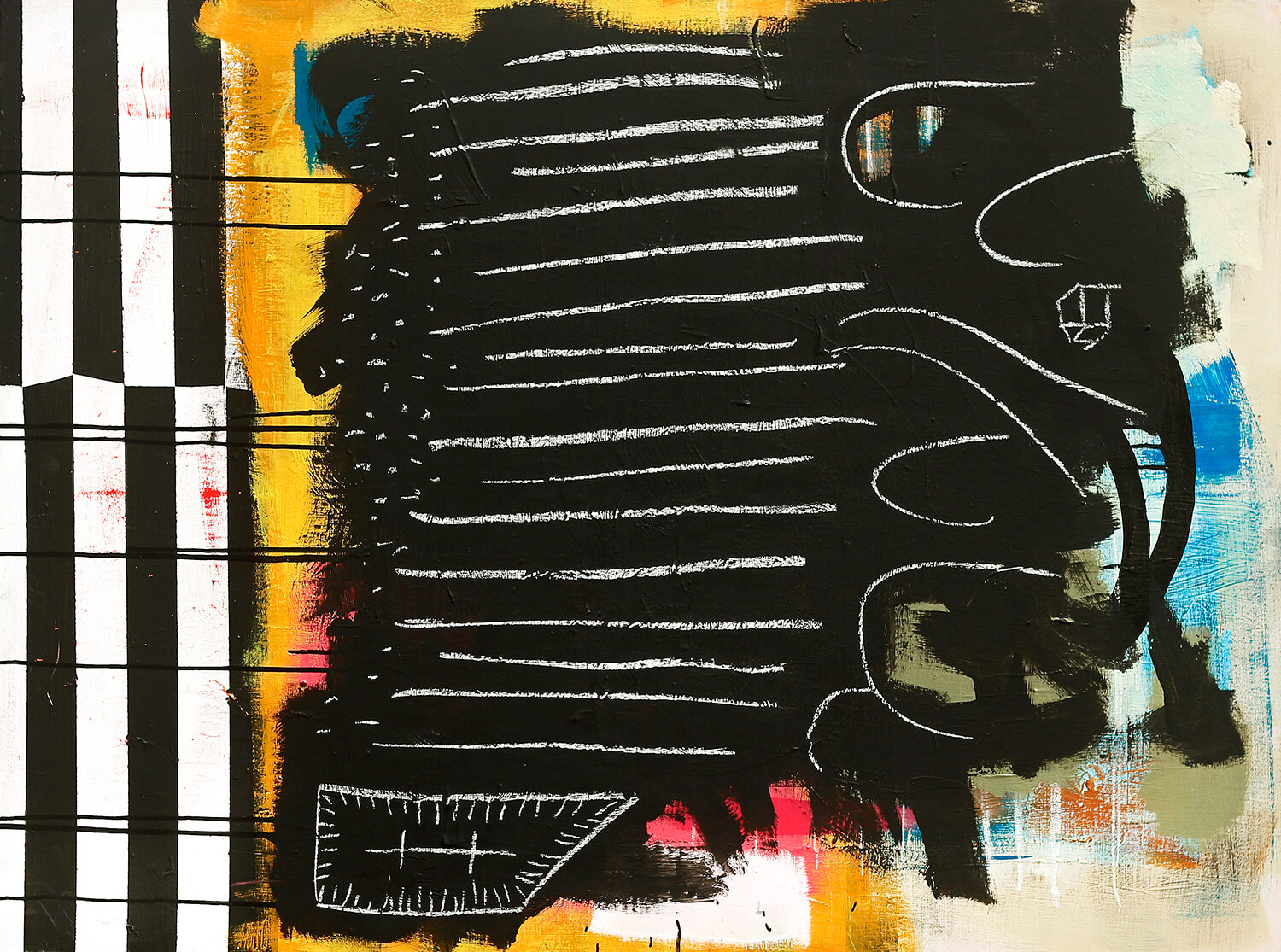 Acrylic, oil bar, graphite, pencil, chalk on canvas